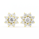 They feature a brilliant round center diamond, surrounded by multiple round diamonds arranged in a flower-like pattern, all set in yellow gold prongs.