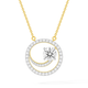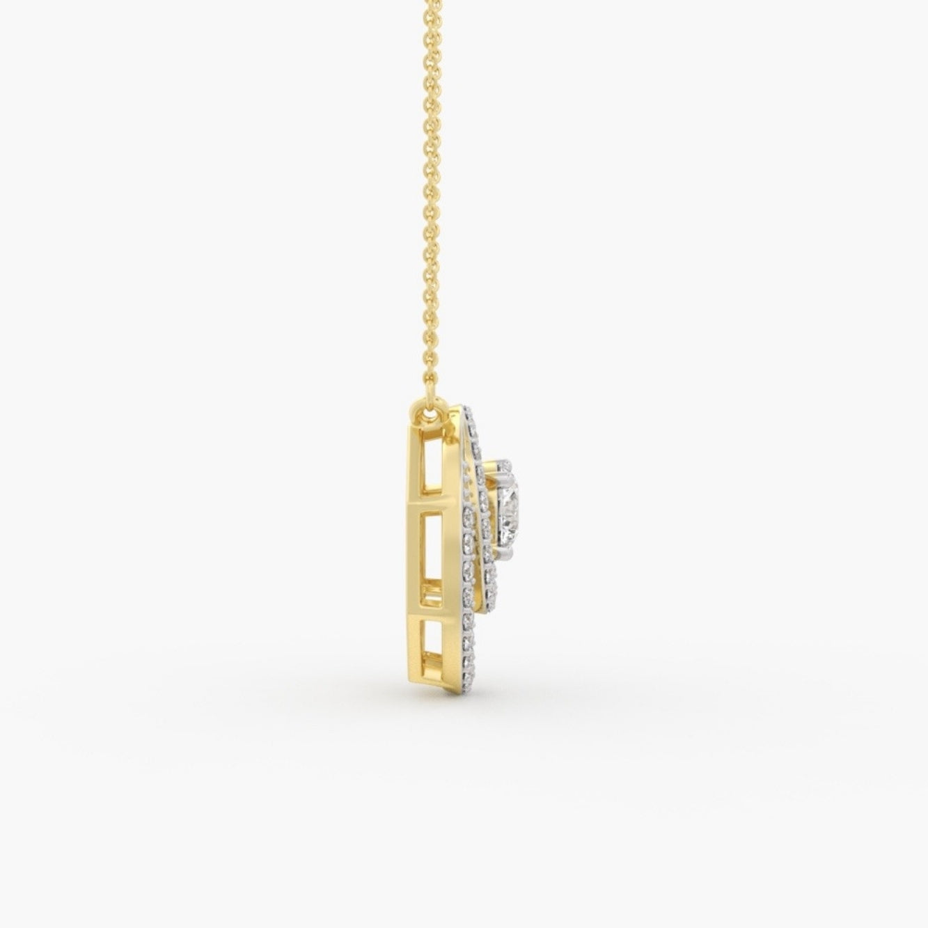 This enchanting pendant features a round brilliant diamond gracefully set within a double circular swirl design, symbolizing infinite harmony. The outer and inner spirals are adorned with sparkling pavé diamonds, creating a mesmerizing halo effect. Crafted in yellow gold with a delicate chain, this pendant radiates elegance and timeless beauty, perfect for both everyday wear and special occasions.