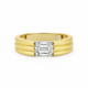 Refined and contemporary, this ring showcases a sleek emerald-cut diamond set at the center of a polished gold band. The triple-groove detailing adds depth and character, while the subtle inner accent diamond offers a discreet touch of sophistication—perfect for a modern yet timeless look.