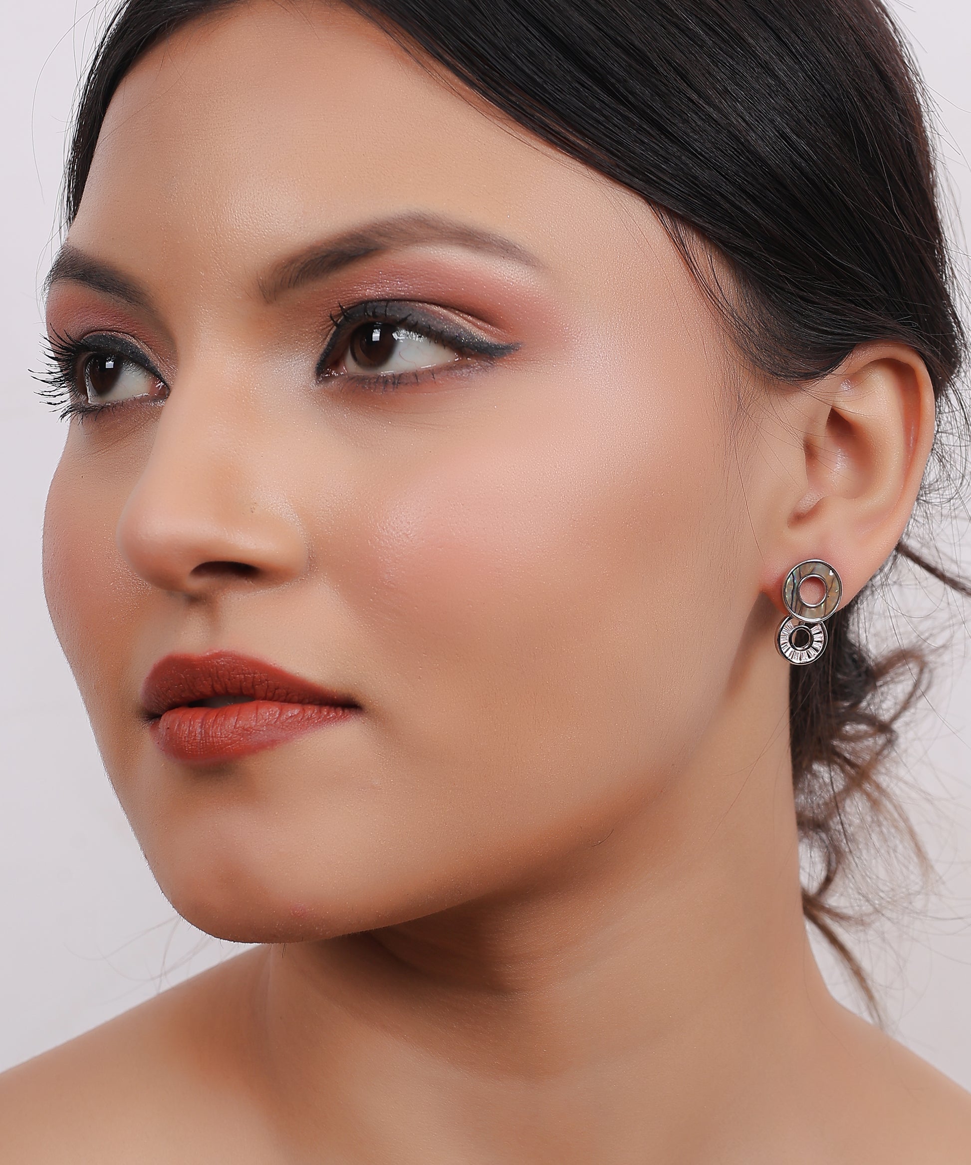 The Kalliski Silver Ocean Glow Drop Earrings is a modern and elegant piece, featuring a unique dual-circle design with mesmerizing abalone shell inlays and sparkling accents. Set in a sleek silver-tone finish, these earrings bring a touch of sophistication and natural beauty to any outfit.