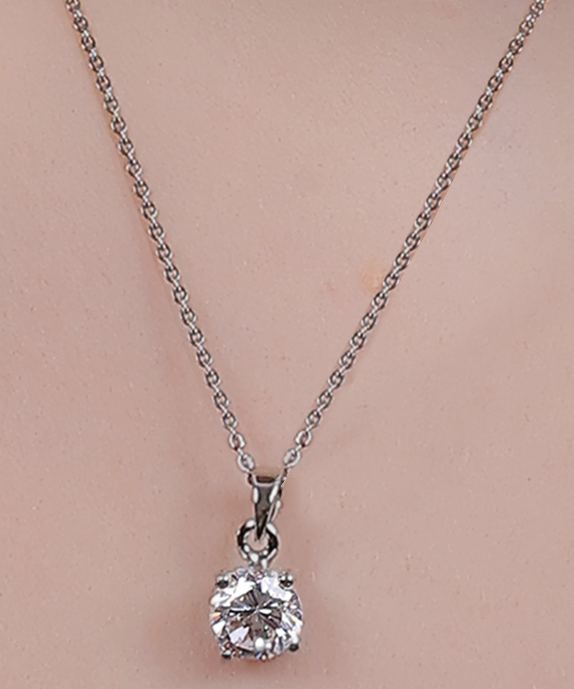 The Kalliski Silver Solitaire Pendant is a classic piece, featuring a single round-cut shimmering stone set in a sleek and minimalistic silver design. Simple yet elegant, it’s perfect for adding a touch of timeless beauty to any outfit.