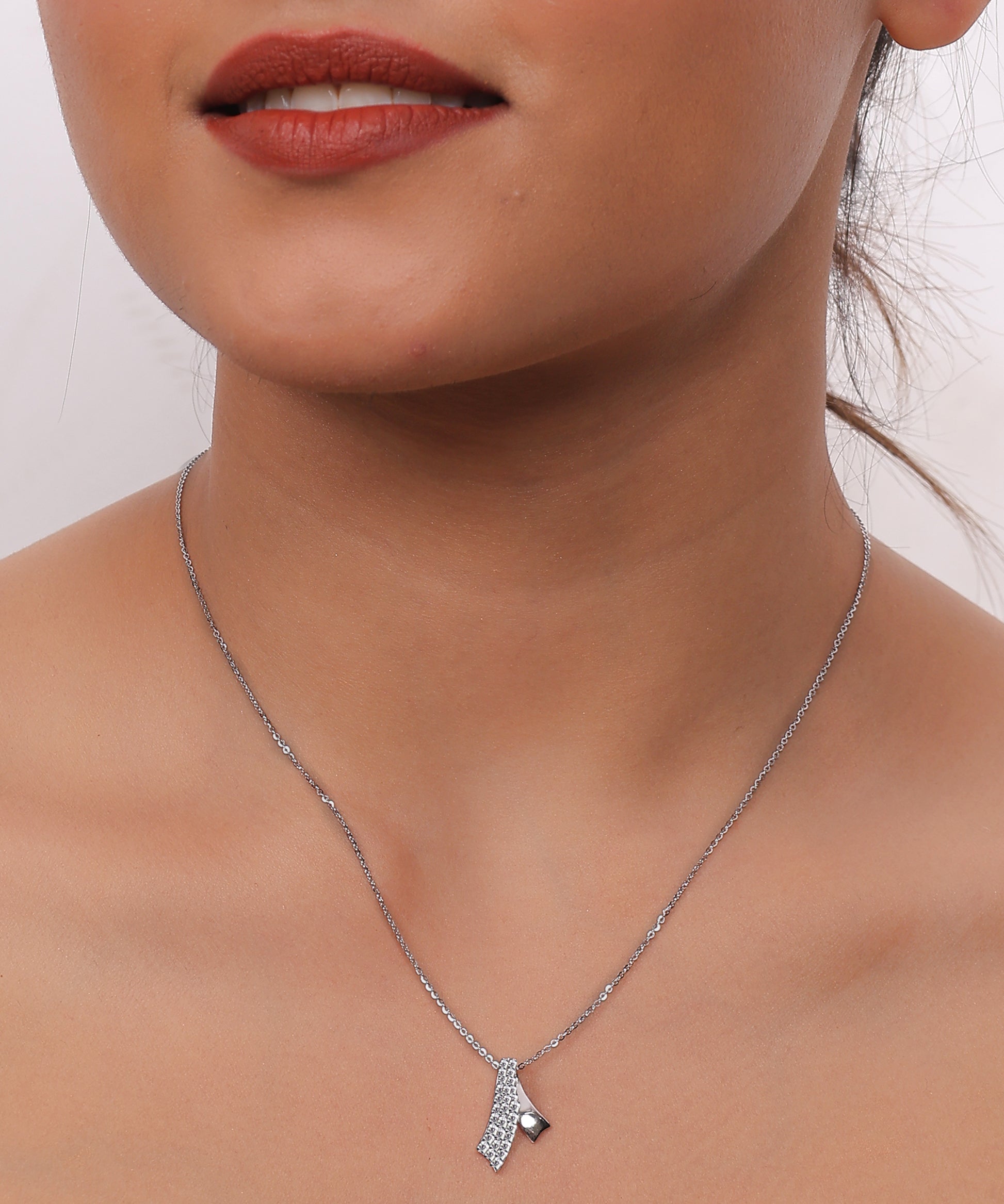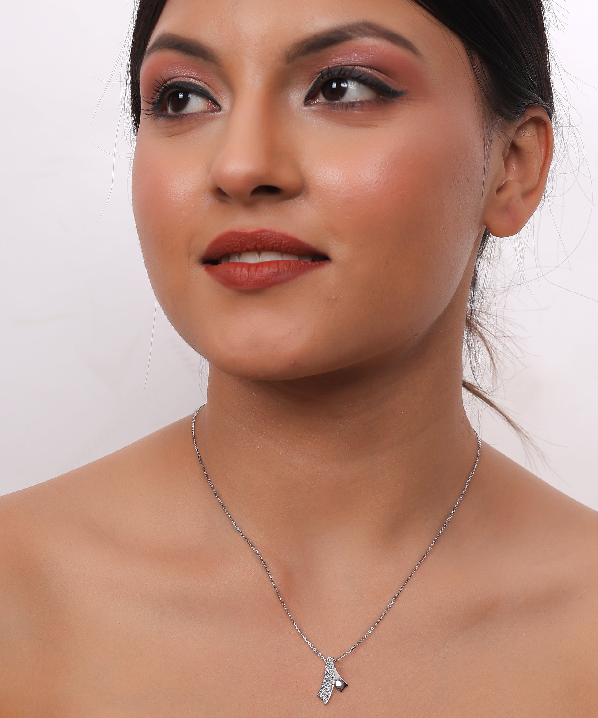 The Kalliski Silver Sparkling Bow Pendant showcases a graceful bow-inspired design, crafted in polished silver and adorned with shimmering crystals. This timeless piece radiates elegance and sophistication, making it the perfect accessory to elevate any outfit.