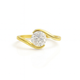 A symbol of elegance and modern romance, this ring features a dazzling round brilliant diamond embraced by a graceful bypass-style 18k yellow gold band. The unique sweeping design creates the illusion of the diamond floating effortlessly at the center, highlighting its brilliance and fire. Minimalist yet striking, this piece is perfect for those who value timeless sophistication with a contemporary twist.