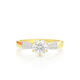 This timeless engagement ring features a brilliant round-cut diamond at its center, held securely by six golden prongs. The 18k yellow gold band is gracefully accented with diamond-studded white gold shoulders, creating a harmonious blend of warmth and brilliance. Designed for those who cherish understated luxury, this ring embodies classic elegance with a modern touch, making it a perfect symbol of eternal love.