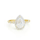 This elegant engagement ring features a stunning pear-shaped diamond at its center, symbolizing both uniqueness and timeless beauty. The centerpiece is surrounded by a delicate halo of round brilliant diamonds, enhancing its sparkle and brilliance. Crafted in 18k yellow gold, the band is adorned with alternating marquise and round diamonds, adding a touch of sophistication and charm. Perfectly balanced in design, this ring embodies luxury and romance, making it a breathtaking choice for someone truly special.