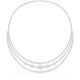 A breathtaking masterpiece featuring three rows of sparkling diamonds draped in a cascading design. Each layer is meticulously crafted with round brilliant-cut diamonds, set to maximize radiance and flow seamlessly along the neckline. Finished with a delicate white gold chain, this necklace embodies elegance, luxury, and timeless sophistication.