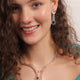 Ziva Emerald Drop Necklace Set exudes contemporary grace with a refined touch of glamour. Featuring twin cascading pendants accented with brilliant cubic zirconia and striking emerald-green teardrop stones, this set creates a captivating silhouette. The sleek, asymmetric design is beautifully complemented by a polished gold-plated finish, making it an ideal choice for evening soirées, cocktail parties, or formal occasions. Perfect for those who love minimal elegance with a hint of bold sparkle.